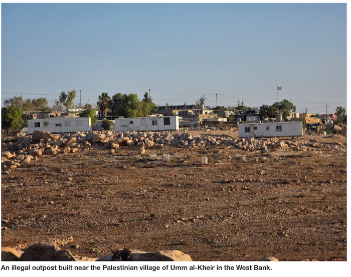 An illegal outpost built near the Palestinian village of Umm al-Kheir in the West Bank.